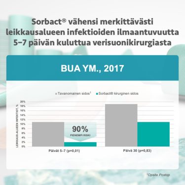 Sorbact vähensi merkittävästi verisuonikirurgisten haavojen leikkausalueen haavainfektioiden syntyä 5–7 päivän kuluttua toimenpiteestä